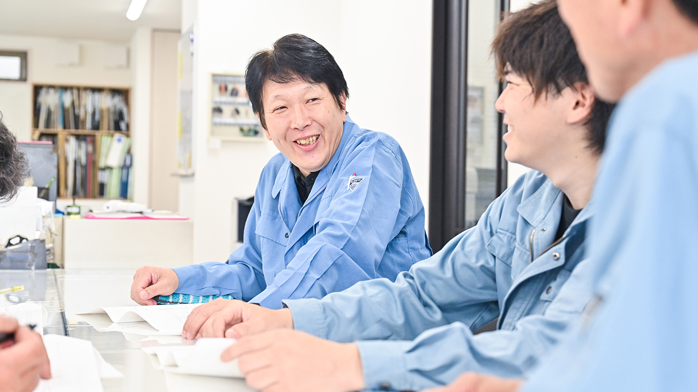 「仕事は目一杯やりつつ、趣味や自分の時間も大切にしてほしい」という思いから、当社では労働環境の改善に注力しています。その軸となるのが、各現場を必ず「施工管理」と「職長クラス」の2名で担当する体制です。現場を任せられる職長がいるため、施工管理が一日中現場に張り付く必要はなく、施工管理1人に業務負荷が集中することがありません。だからこそ、残業が少なく、休みもちゃんと取れる環境を実現しています。