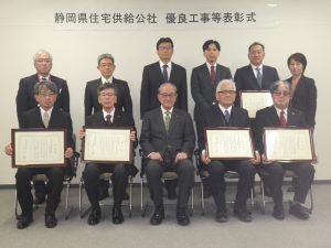 「永きにわたり公社が管理する県営住宅の修繕業務において卓越した技術に基づき迅速かつ的確な修繕にとりくんでこられました。また、お客様の要望に対して誠心誠意尽力されるなど「お客様とともに歩む」を基本理念とする公社業務の推進に多大な貢献をされました」熱海市内・伊東市内で確実な仕事を実施したとのことです。
